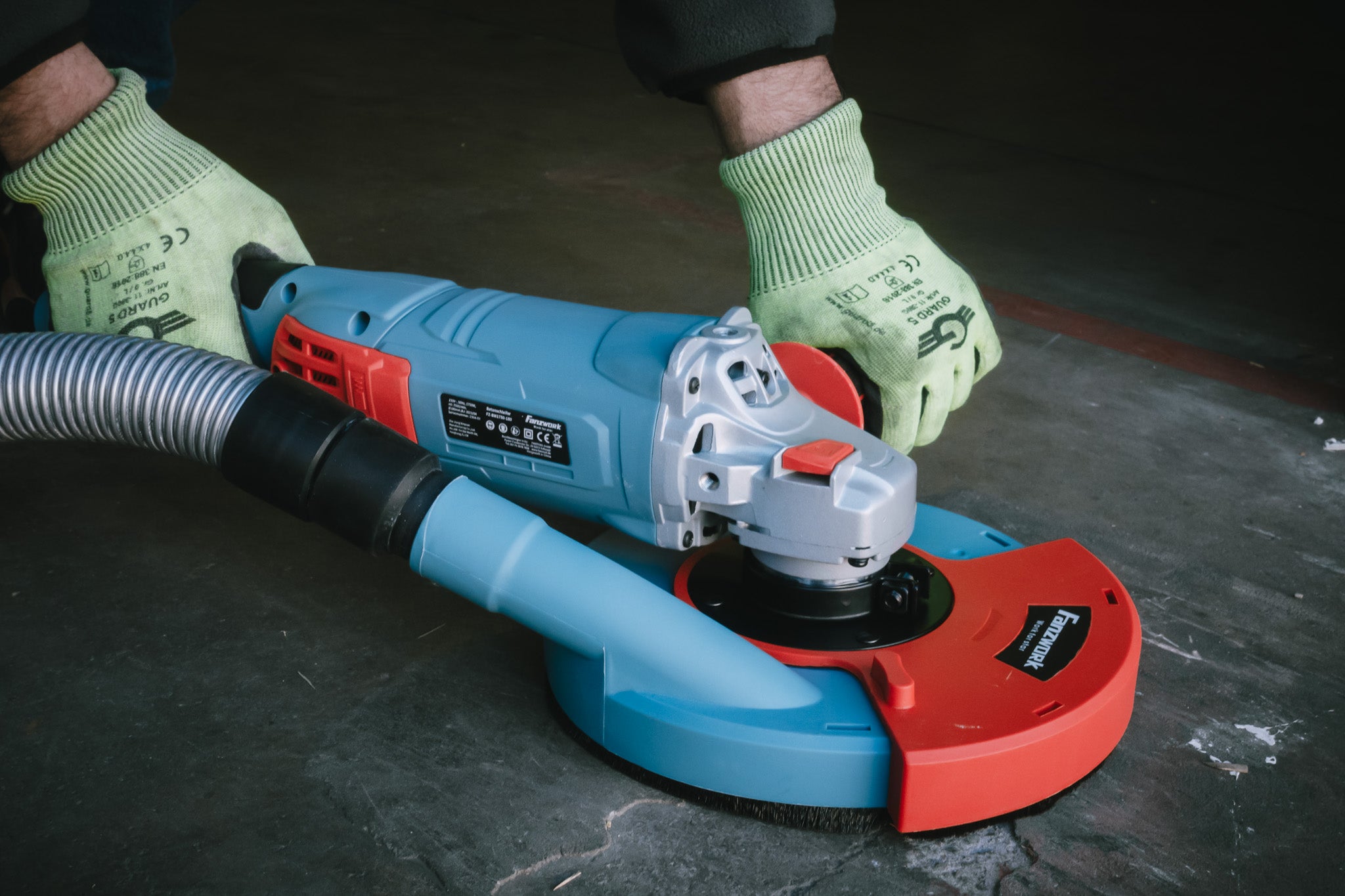 FANZWORK 1750W/180mm Betonschleifer Set, inkl. Premium180mm Diamantschleiftopf, Absaughaube, L-förmiger Griff FZ-BW1750