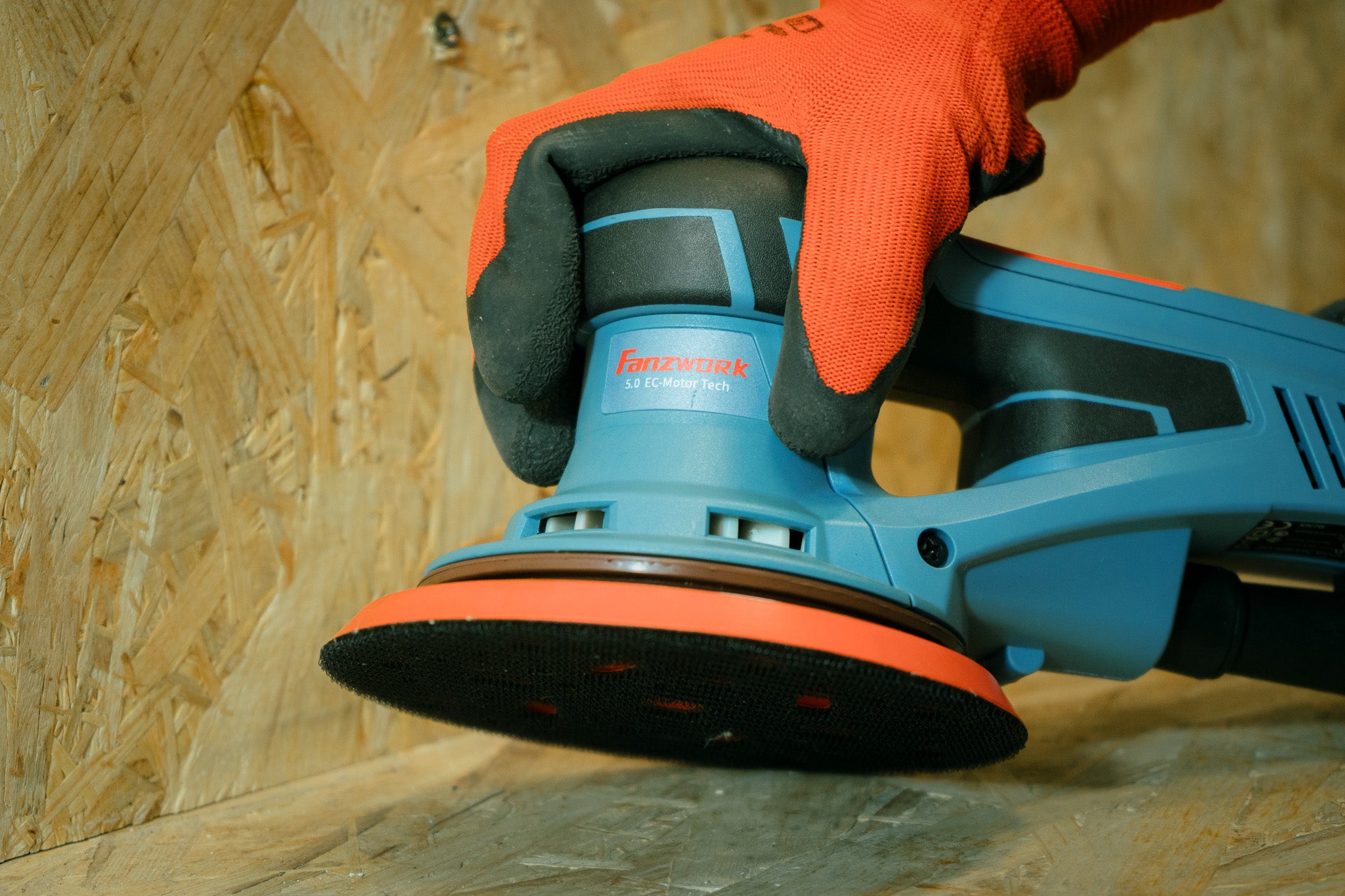 FANZWORK Exzenterschleifer 5mm Schleifhub mit 150mm Schleifteller Klett. 350W bürstenlosen EC-Motor, inkl. Tragkoffer FZ-EZ150A 49B