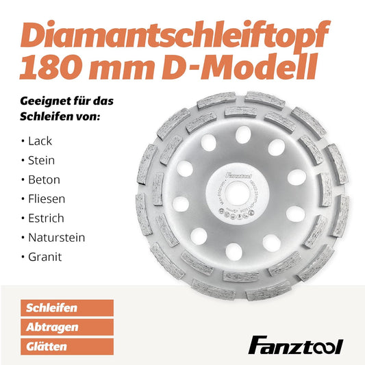 • FANZTOOL Diamantschleiftopf 115/125/180 x 22 mm H-Modell