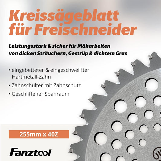 • FANZTOOL Kreissägeblatt Freischneider Klinge 255D x 40Z mit Zahnschutz