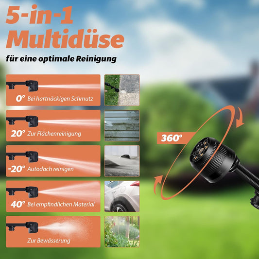 033 FANZTOOL Akku Hochdruckreiniger 20V mit 5-in-1-Multifunktionsdüse, 24 Bar Druck