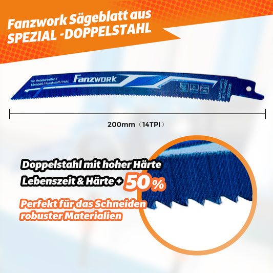 FANZWORK 1100W Säbelsäge Elektrisch – Leistungsstarke mit 0–2500 SPM, LED, inkl. Sägeblatt, mit 4 m Kabel – Für Holz, Metall & Kunststoff u.v.m – Werkzeugloser Klingenwechsel