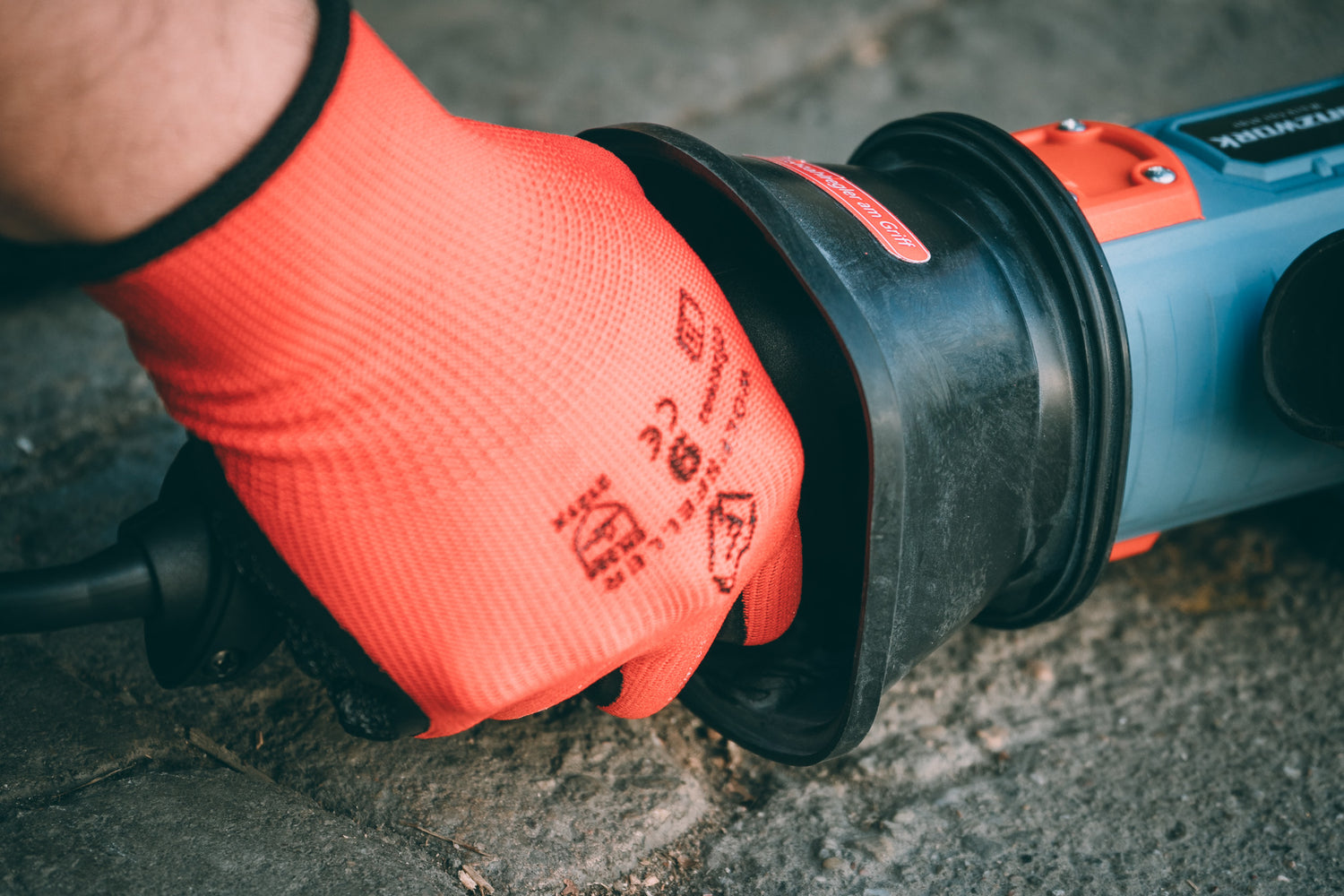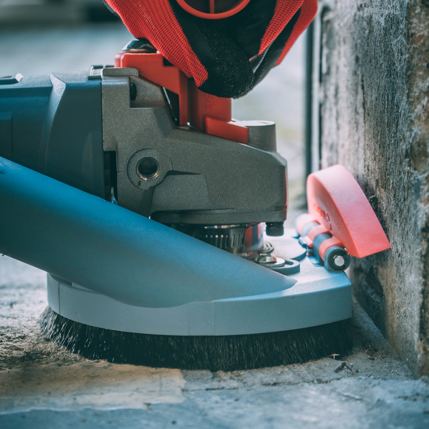Our concrete grinder has been optimized: The handle area now features an additional rubber cover. The on/off switch and speed controls are cleverly concealed under the rubber cover to protect them from dust and dirt. This ensures your hands are optimally protected from dust and flying particles while working, significantly increasing safety and comfort during use.