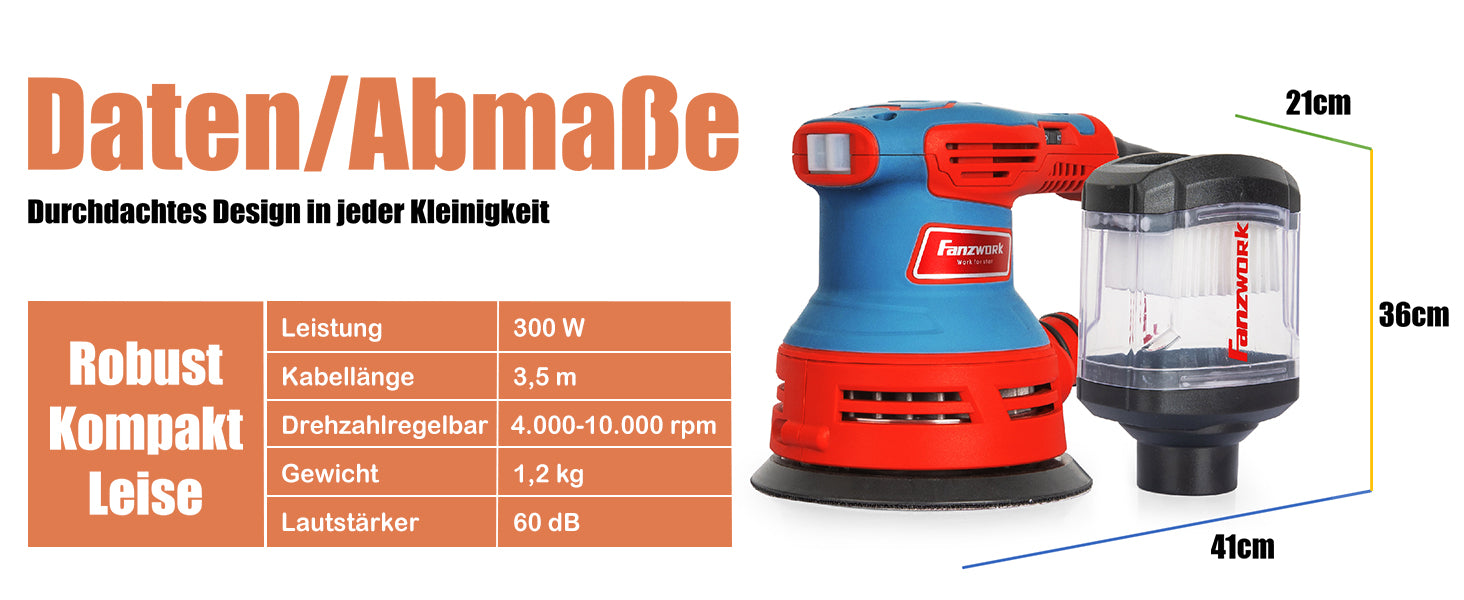 49C FANZWORK 300W eccentric sander with dust container and dust-protected switch