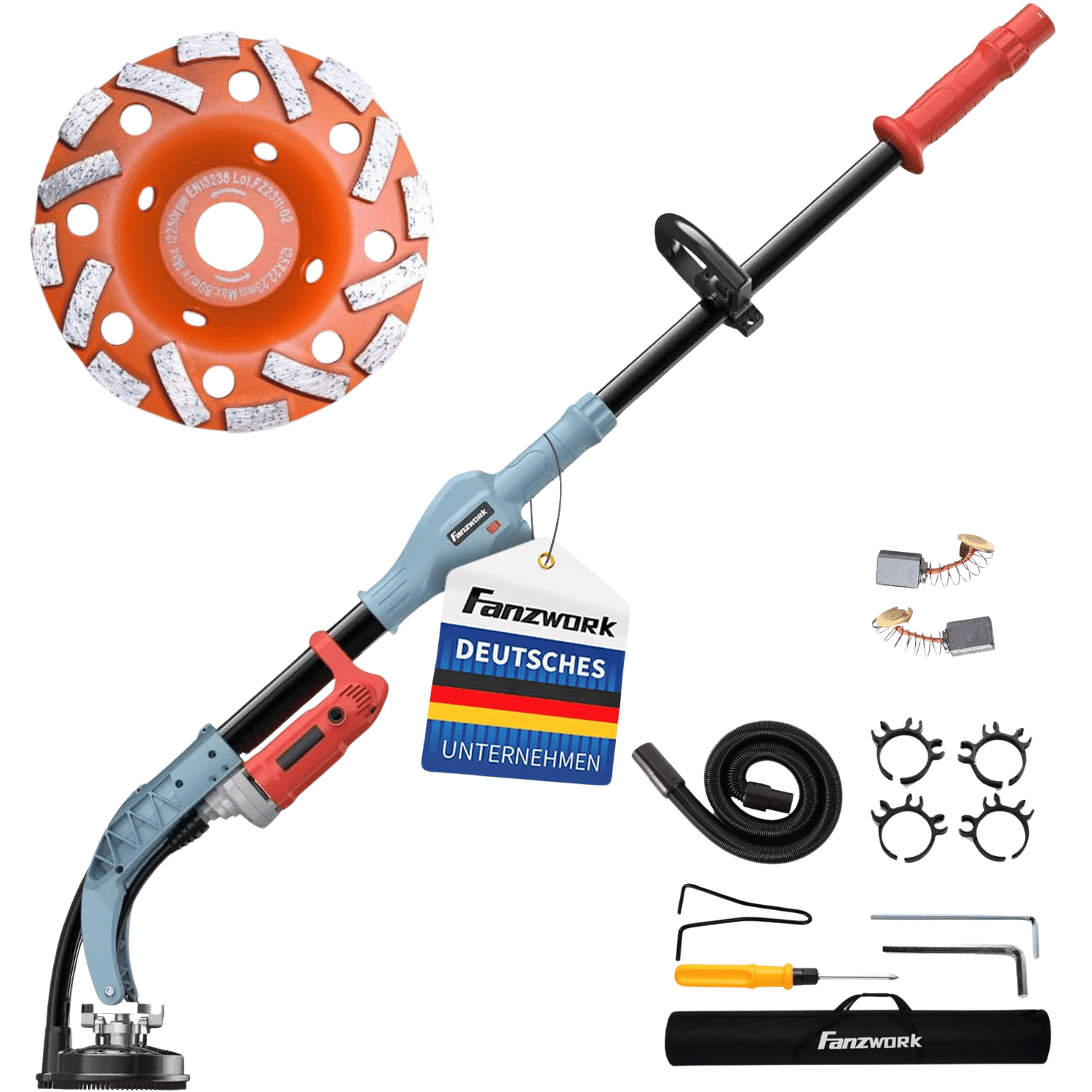 Used - FANZWORK concrete grinder 1010W with telescopic rod up to 1.20 m Including diamond grinding cup 125mm in professional quality