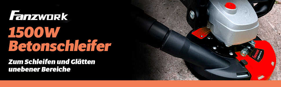 Ponceuse à béton FANZWORK 20B, ensemble de fraiseuse à béton avec meule diamantée et hotte aspirante (1500 W/125 mm+)