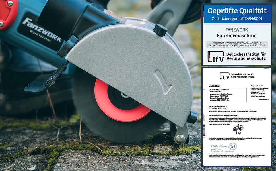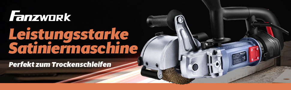 FANZWORK V2 1500 Watt Satiniermaschine mit Staubsaugung-Anschluss, Drehzahlregelung, Nylon & Stahldrahtbürste FZ-7301B