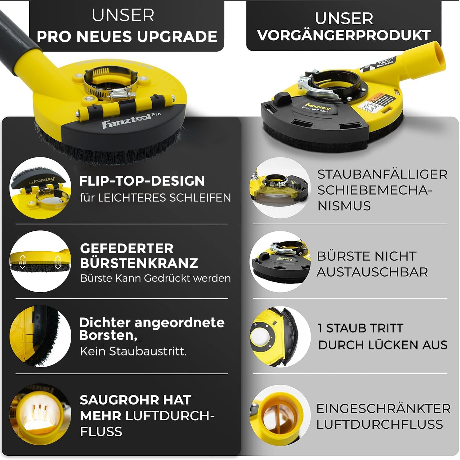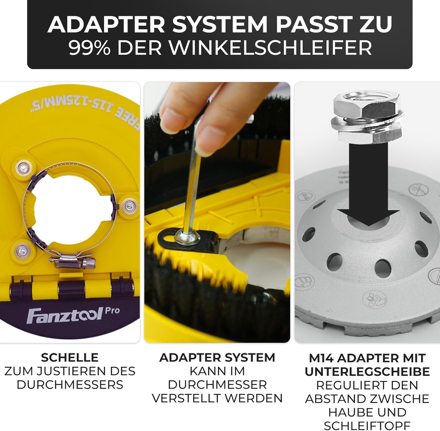 #1P NEU FANZWORK 3.Generation Absaughaube für Winkelschleifer inkl. 125 mm Diamantschleiftopf PROFI QUALITÄT – Bürsten Auswechselbar – 99% Universal passend – Verstärkter Adapterring – M14 Adapter