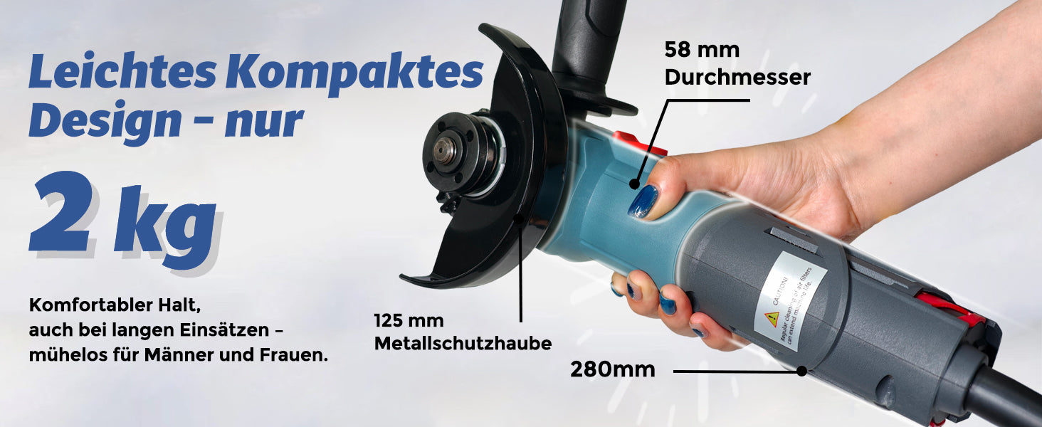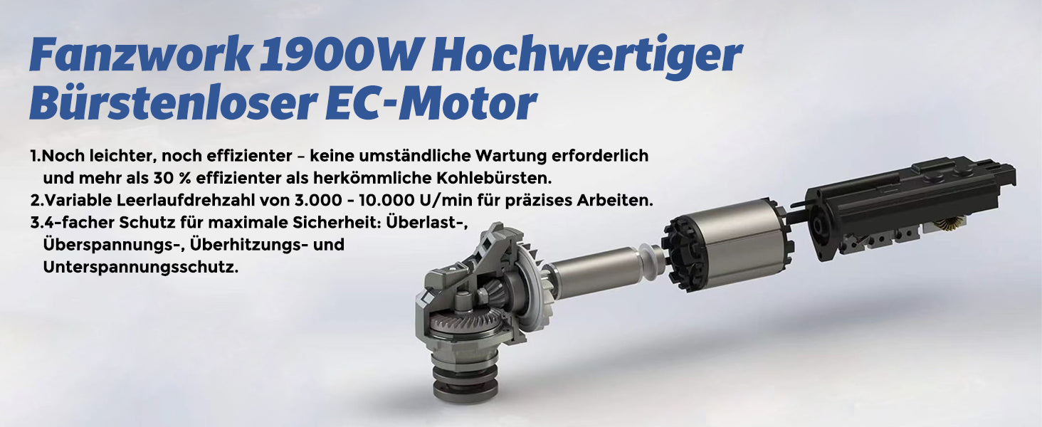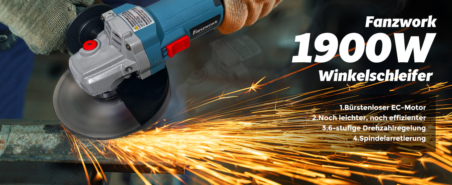 FANZWORK Winkelschleifer 1500W Bürstenloser EC Motor, Schutzhaube 125mm *1, 2 kg Leicht