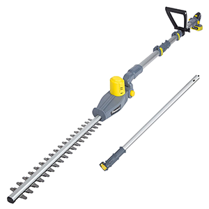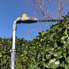 Durch die Teleskopstange können Sie einfach und unkompliziert die Reichweite der Heckenschere vergrößern. Bearbeiten Sie auch hohe Hecken und Sträucher präzise und genau.