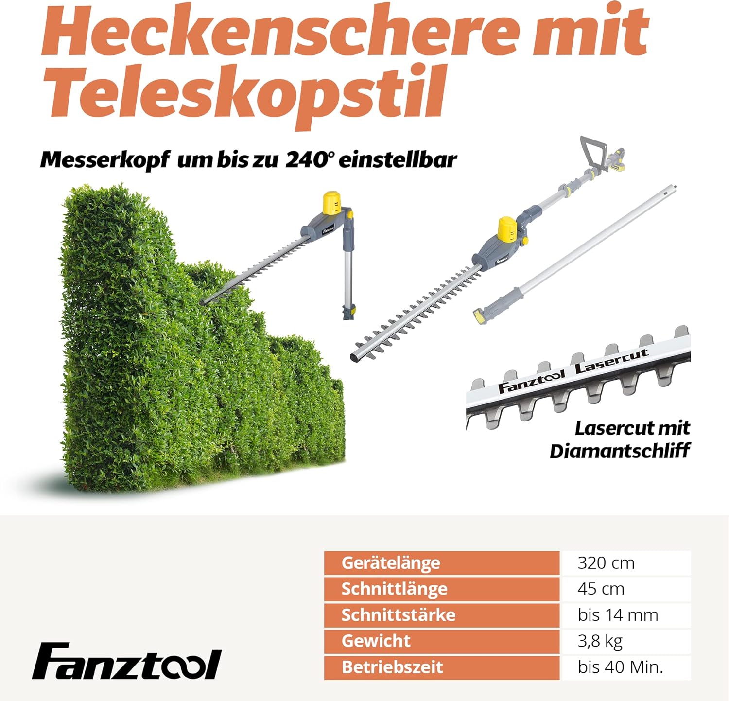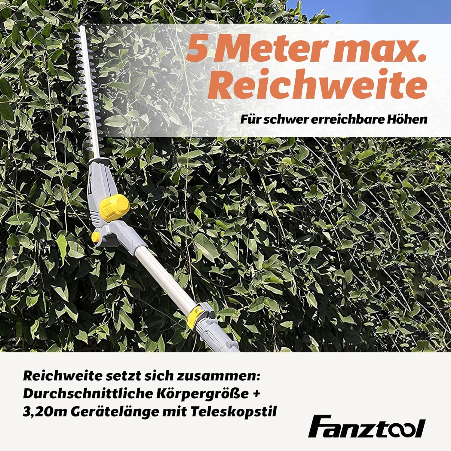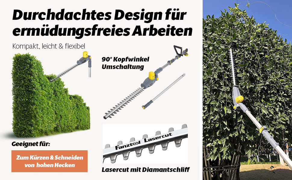 FANZTOOL Akku Heckenschere mit Teleskopstiel