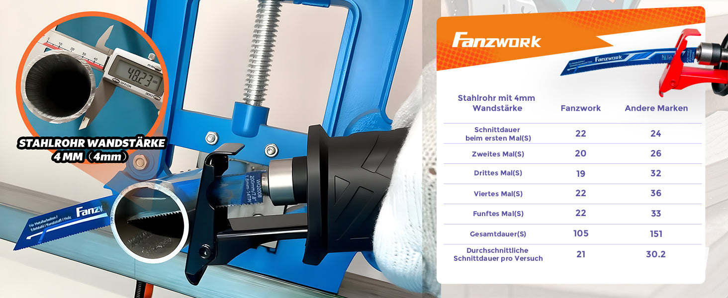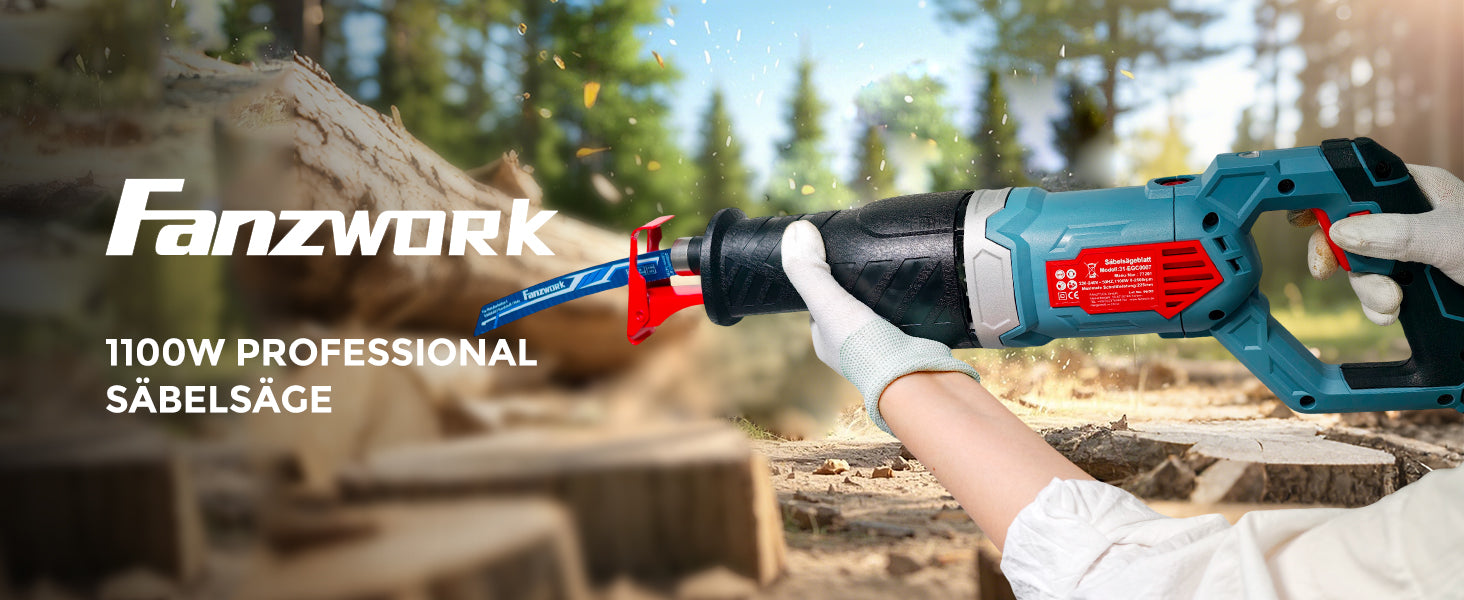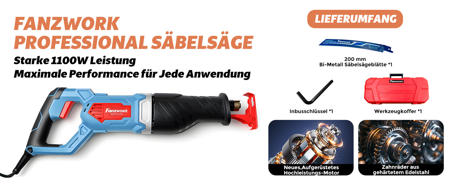 FANZWORK 1100W Säbelsäge Elektrisch – Leistungsstarke mit 0–2500 SPM, LED, inkl. Sägeblatt, mit 4 m Kabel – Für Holz, Metall & Kunststoff u.v.m – Werkzeugloser Klingenwechsel
