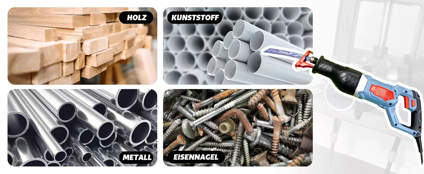 Ergonomischer Griff, Extrem robuste Sägeblätter-Spezialstahl, Stufenlose Geschwindigkeitsregelung